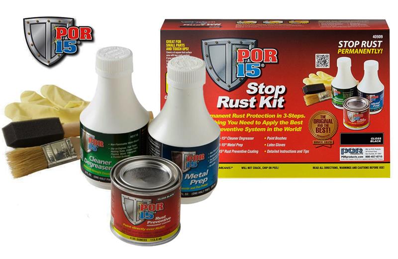 | POR-15 STOP RUST KIT. Samples, Clean, prep and paintAdditional Information POR-15 STOP RUST TEST KIT. Created in response to requests from customers to try out the entire 3-step rust-stopping system. You’ll get a: - 4 oz. can of POR-15® Black gloss paint (enough to cover 6 square feet with 2 coats),