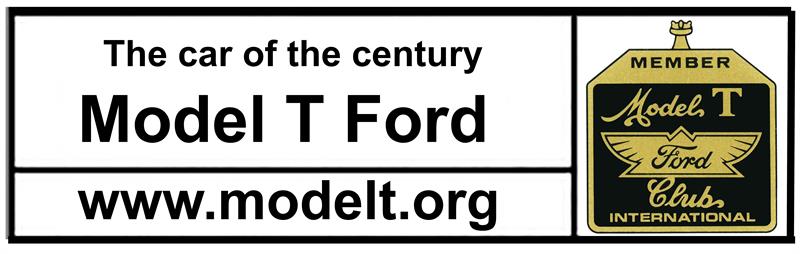 Bumper magnet - MODEL T FORD the car of the century, has the Model T Ford Club International logo on one side and www.modelt.org at bottom 3” 10”, made of tough weather resistant vinyl with magnetic backing and will stick to any smooth metal surface without damaging.